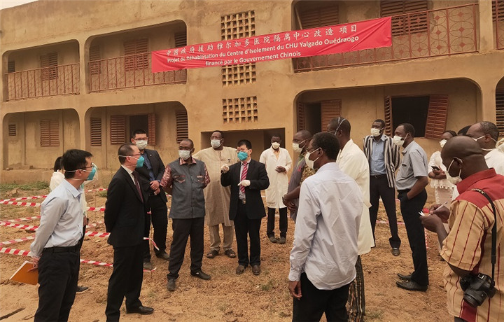 4月15日,中国援助布基纳法索雅尔加多医院隔离房改造项目举行开工仪式,我馆李健大使、经商参赞文文和布卫生部秘书长威尔弗里德、雅尔加多医院院长康斯坦丁、布卫生紧急事件应对中心主任马歇尔、雅尔加多医院二十余名医护人员代表等出席仪式。