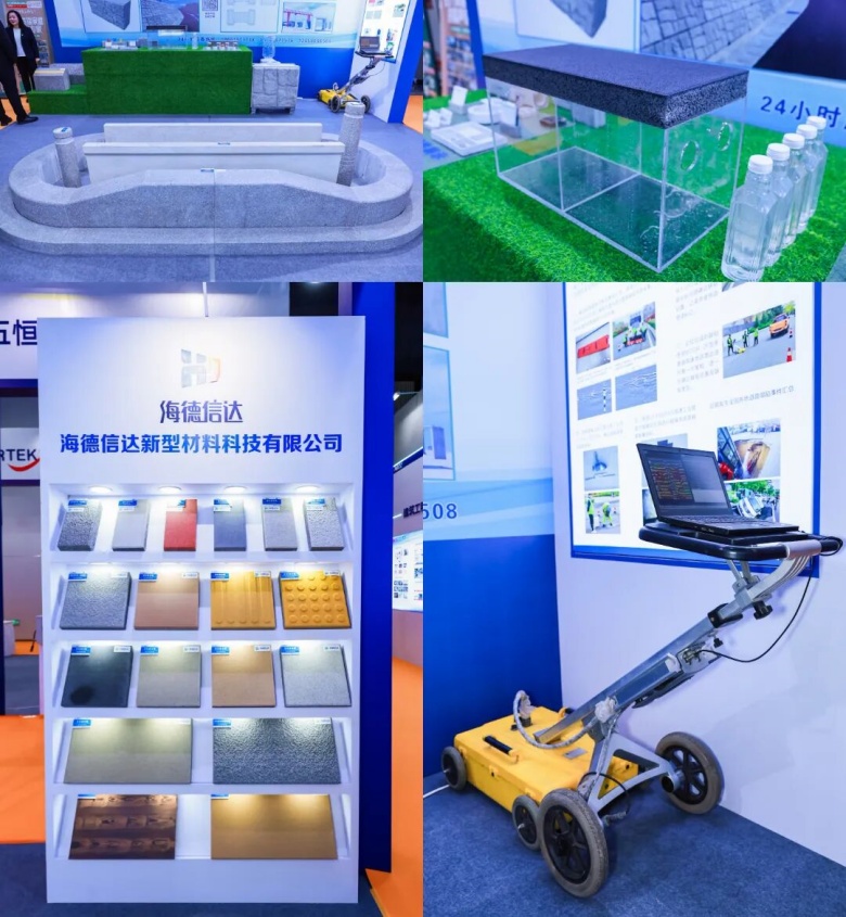 本次展会中,集团重点呈现了海德信达新型材料与道路养护雷达探测两大业务板块。其中,全资子公司青岛海德信达新型材料科技有限公司的参展产品备受瞩目,利用石墨尾矿、建筑垃圾固废生产的仿石路沿石、装配式排水沟等新型建材,既传承了天然石材的自然质感,又兼具耐久性与环保性,实现了环保理念与工程品质的完美融合,成为天然石材的优质替代选择。作为山东省新型城镇化重点项目、新旧动能转换优选项目,海德信达拥有全国领先的设备生产线,主打产品涵盖仿石系列建材、预制管廊、商品混凝土及建筑垃圾回收处置再利用等,凭借施工便捷、低碳环保、可回收利用等优势赢得广泛关注。此外,集团针对地下空间开发引发的塌陷隐患推出的道路养护雷达探测服务,通过地质雷达检测车系统快速扫描路面下病害体,精准分析并提供诊治方案,为道路安全治理提供科学支撑。